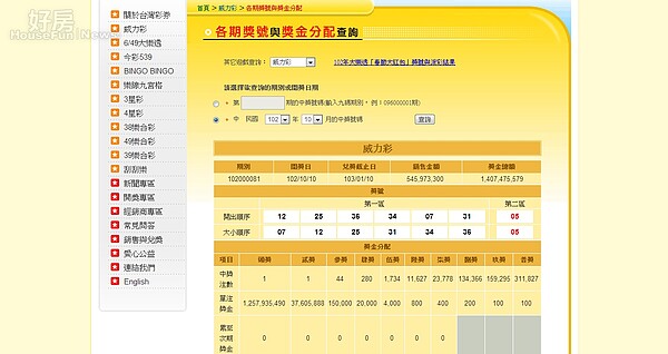 If your post is a meme on this list and is uninventive, it can be removed 威力 彩. 如係一人中獎則為獨得;如無中獎注數,則獎金列入次期該獎 之『累積獎金』。 2.參獎至普獎採固定獎額之方式分配之,惟如因熱門號碼開出,致參獎至普獎之獎金合計總數逾當期『總獎 金』 3.各期獎金總額含上期累積獎金。 4.中獎號碼及獎金分配以獨立公正人士簽署之紀錄表為準。